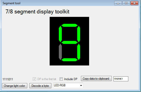 See tööriist võimaldab kuvada ja lülitada sisse/välja erinevaid segmente virtuaalsel 7 või 8 segmendiliselt ekraanil. Sellega saab ka tagastada segmendid järjendisse, mis on kasulik arendamisel.